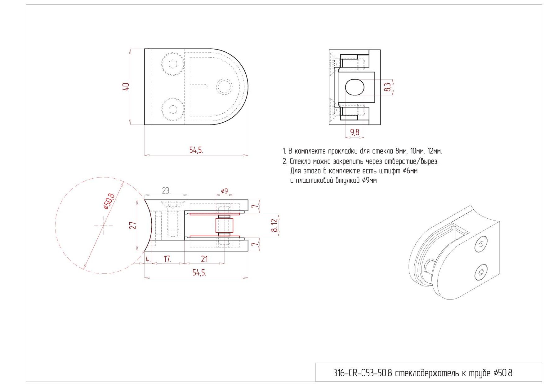 316-CR-053-50.8 Коннектор(стеклодержатель)50*40*27MM под 50.8