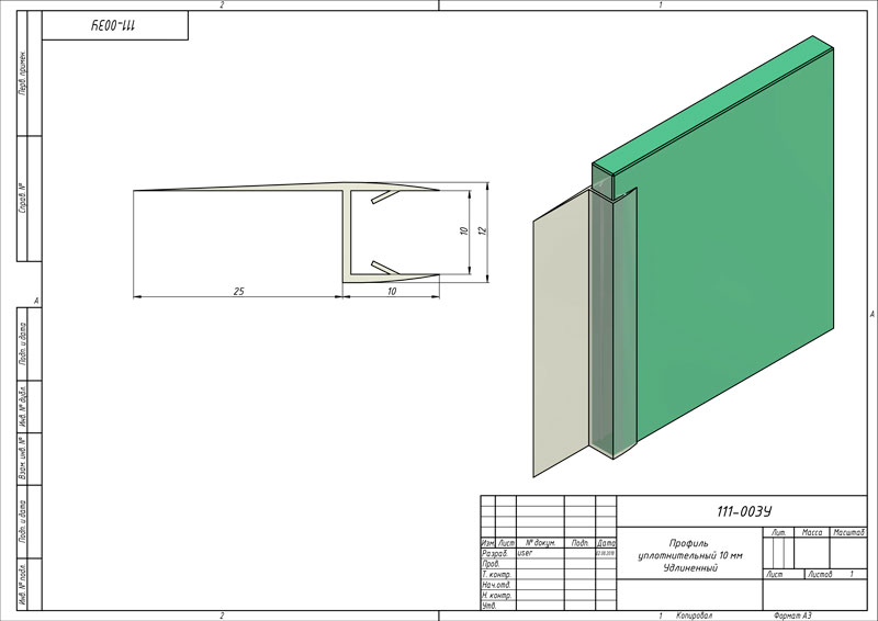 ПУ111-003-10 У25 - профиль уплотнительный 2,2 м